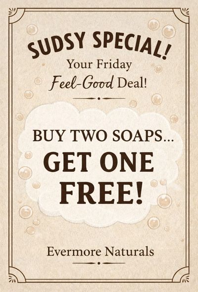 **Add two soaps to your cart, and on checkout, just add which soap you would like for free in the notes. It's that easy. From us to you, Ever you....Evermore.